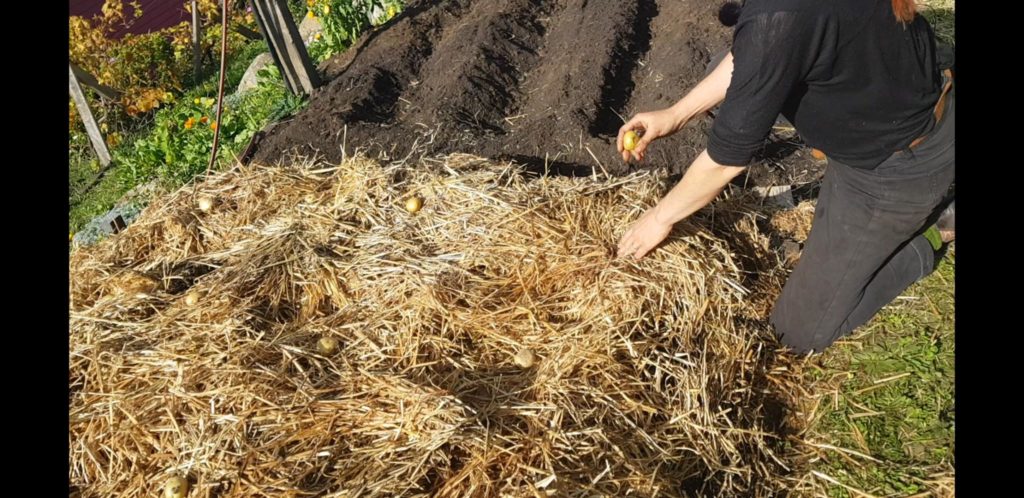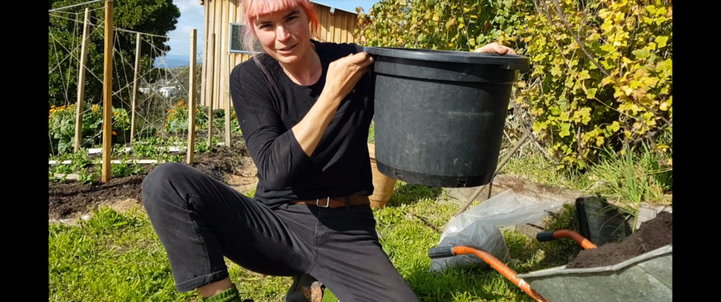 This is a short-term, one season type of garden where you simply put a series of compost pockets (2 handfuls of compost) directly into the bale and plant your seedling immediately – plus add water. You’ll get a great crop for one season, at the end of which the bale will have started to break down. At this point you can compost the whole bale or use it as garden mulch for another section of your property.
