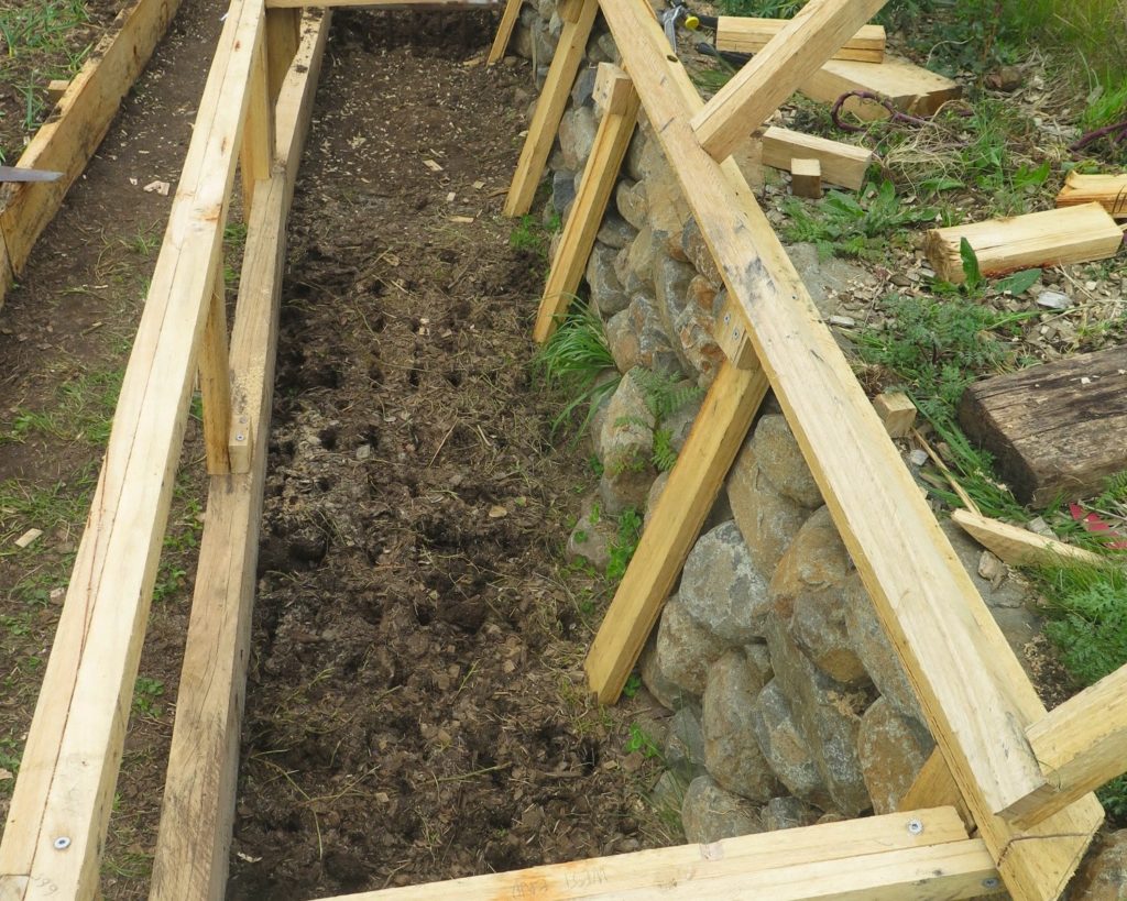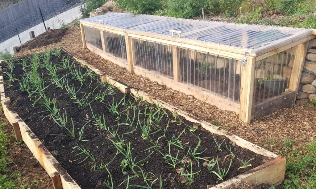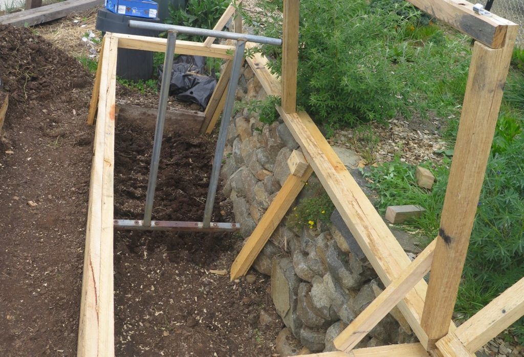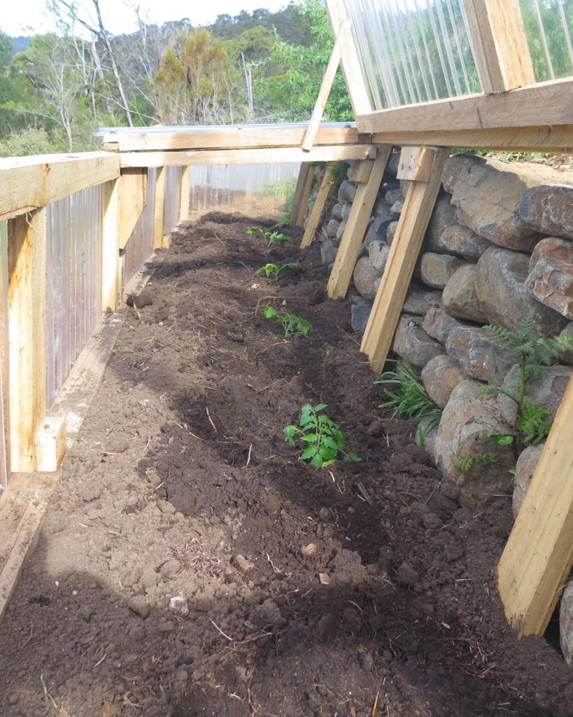 The particular variety of tomato is a local one simply called “George”, named after a Greek market gardener who’s since passed away. He grew and sold this amazing tomato which is large in size, but is more of a shrub – so requires no staking (awesome). Hence, it sits at the bottom of the Kangaroo Apple shrub as seen below. We had some seed gifted to us from Fat Carrot Farm and it’s now our favourite tomato to grow as each plant has huge yields and requires less inputs (mainly staking).
