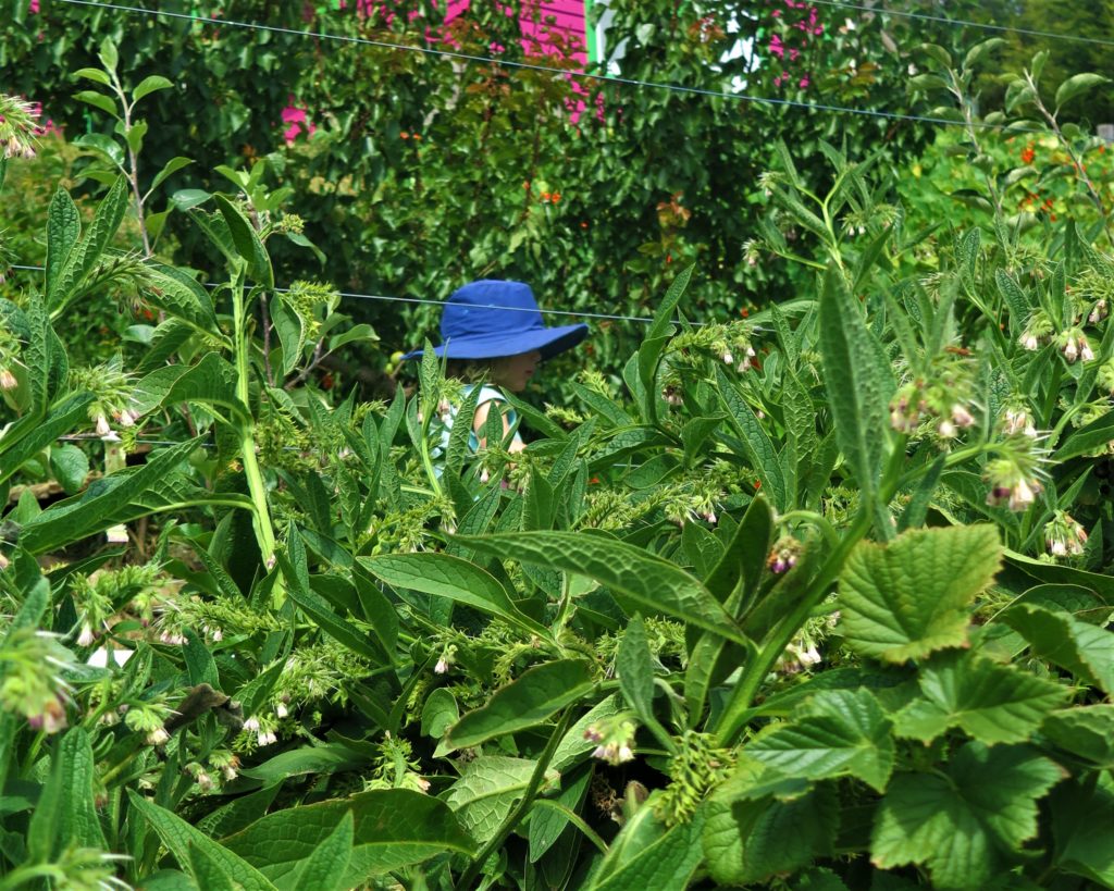 Frida with Jilly who’s being tethered near a comfrey patch for her munching pleasure.
