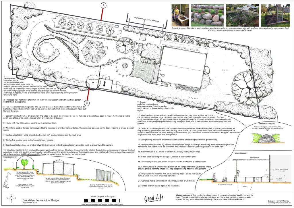 - 30- 40mts: Walk back over the property with resident/s and talk through all design concepts. Ideas are revised and refined throughout this process until a clear concept is established.