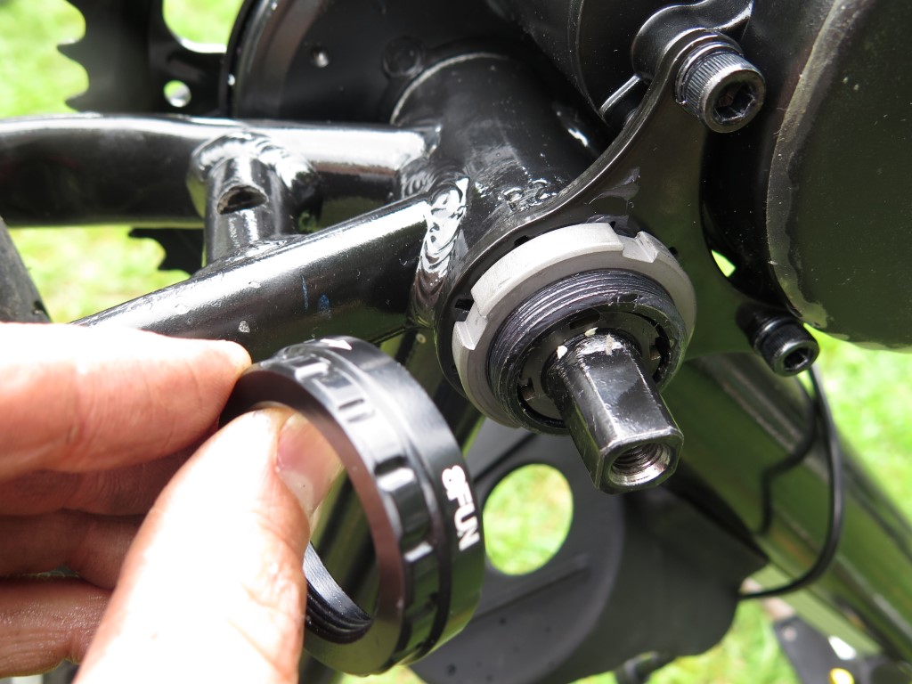 The motor was then inserted in the bottom bracket, and two collar nuts attached to hold it in place.