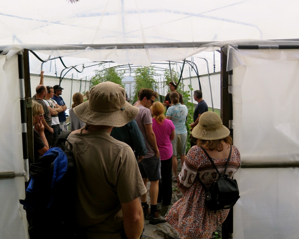 Jean-Martin, squished between the Hobart City Farm team and me (Hannah) – I’m actually involved in both the Farm and Good Life Permaculture – which is nice and confusing, but mostly just nice. Image from Hobart City Farm.