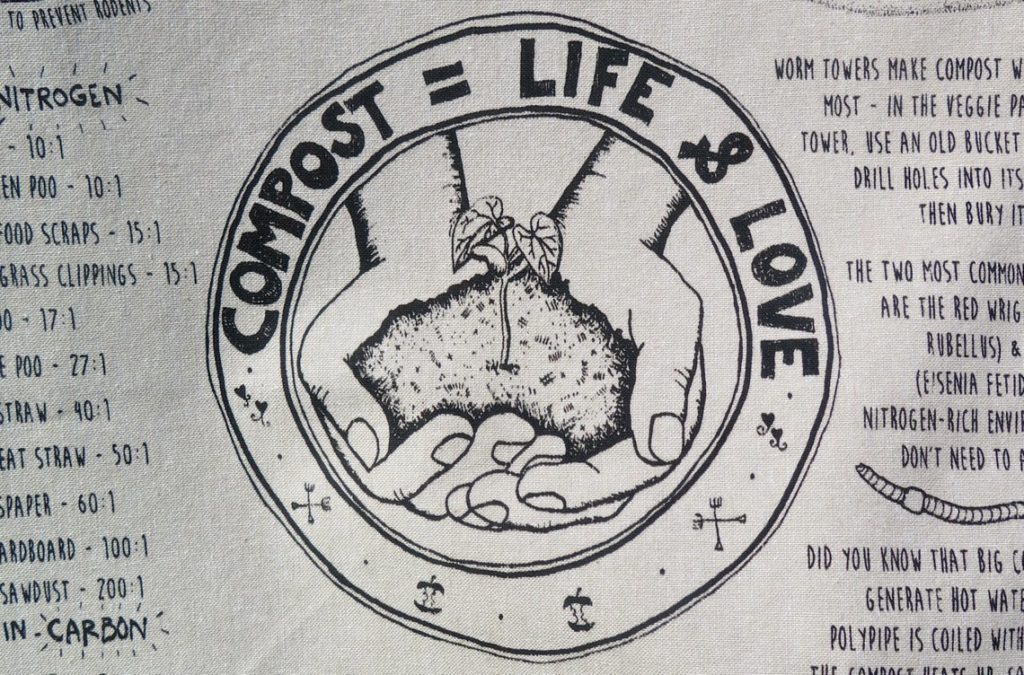 Inspired by practical organic gardening and permaculture techniques, this tea towel provides information on a range of small and large composting methods for the keen gardener.