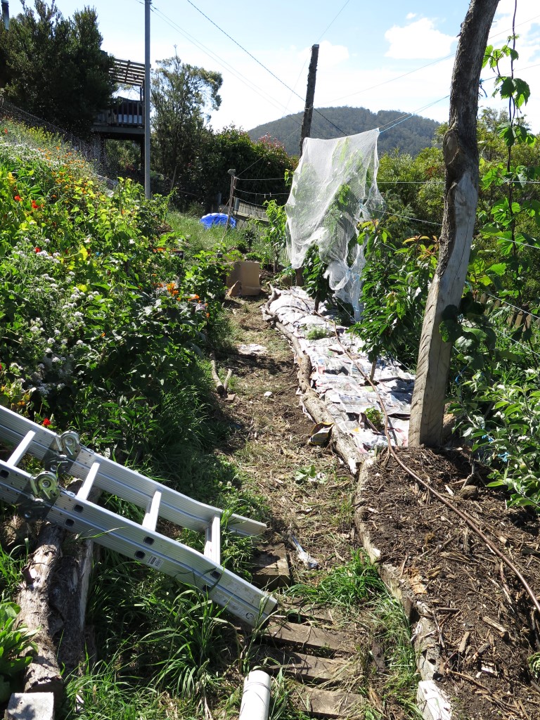 Now, please be aware that sheet mulching is not the silver bullet to vigorous weeds. Generally they will still find a way to come back – just a lot more slowly. You still need to manually stay on top of things in the early days by the occasional weeding session. Eventually they will be overwhelmed and dominated by more desired plants, but in these early days when there’s heaps of sun and space they’ll keep trying to return.