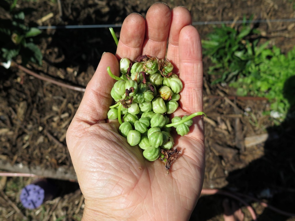 Many gardeners I know of would consider soil with onion weed as ‘contaminated’ and remove it all. I have found that most plants will live with onion weed, so I just methodically remove the biggest ones every spring, until the outbreak is under control. Don’t let it get to you, onion weed removal is a looooong term project.