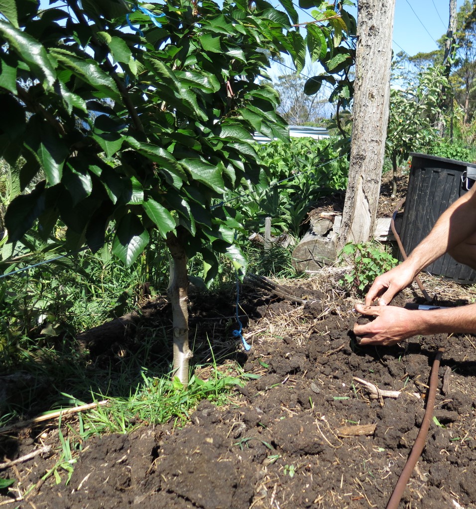 We’ve been tweaking our young orchard lately to stop the grass from creeping in and taking over, something the fruit trees will hate, as will we. Grass sucks a lot of water and nutrient away from trees (and all other plants), so even if you choose to have grass throughout your orchard, your trees will be happier and healthier if there’s a good buffer from their trunk to where the grass starts.