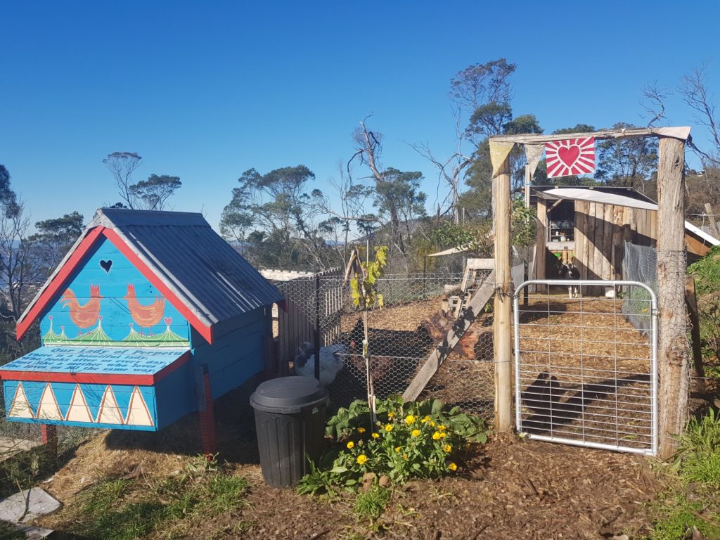 Our main incentive to have goats is to be able to access ethical dairy. While we have just over 3/4 of an acre, we’re less than 3kms from Hobart city, so it’s very urban all around us. Our property is incredibly steep which meant we terraced it to form some functional spaces. Our two goats live on one of these terraces. They don’t free-range across the whole property as we have extensive vegetable gardens and large orchards they would destroy, instead we tether them around the garden at key points where they can eat grass and shrubs. We also take them for little walks down the local bush track to get some exercise.